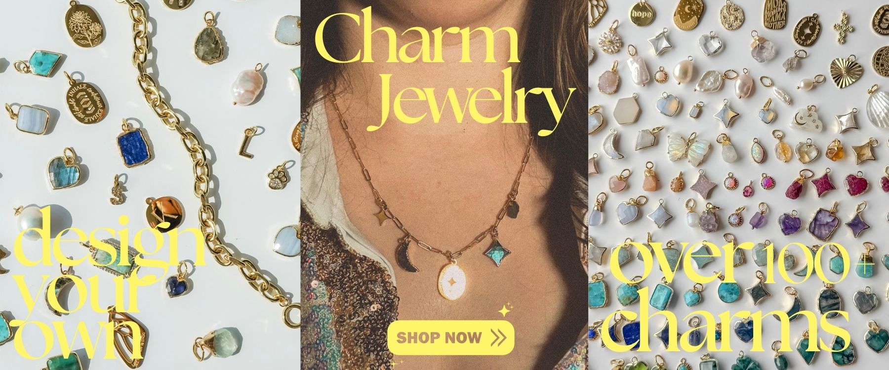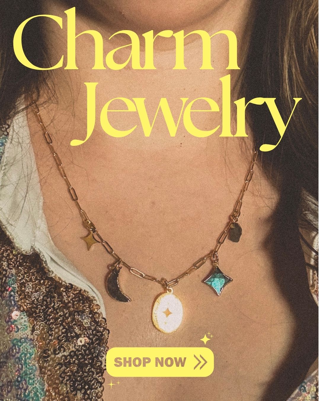 We’re a small, woman-owned business specializing in layering chains, celestial-inspired designs, and customizable charm jewelry.